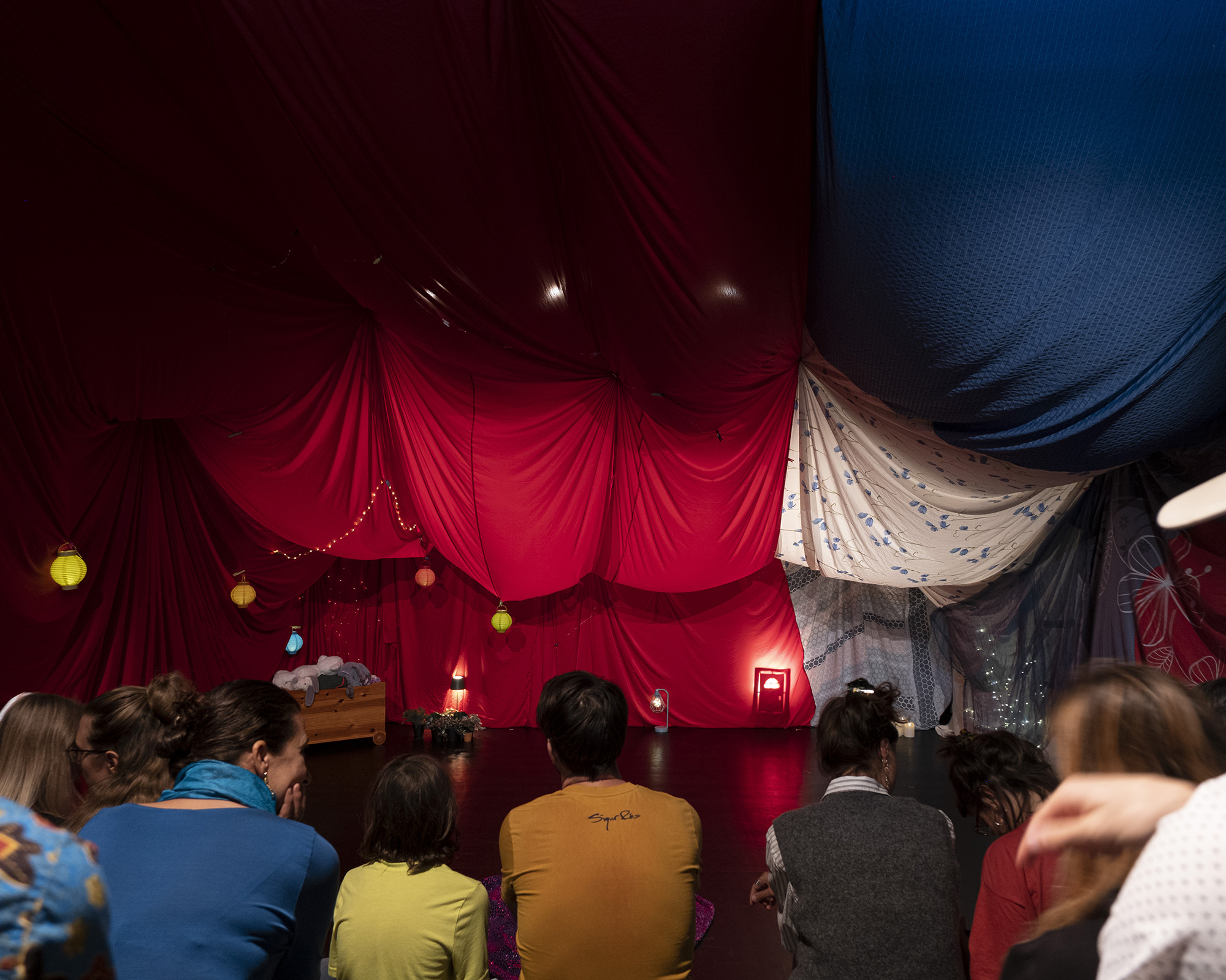 Les souvenirs de Lou restent flous. Réuni·e·s dans une cabane, iels s’amusent comme autrefois et incarnent tour à tour les parents de Lou pour combler les vides.